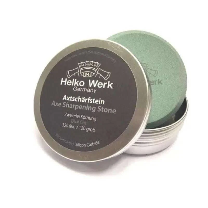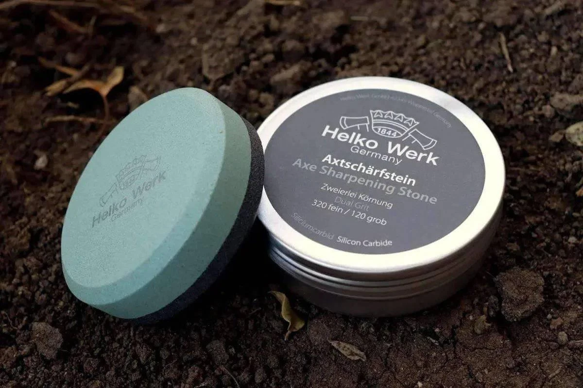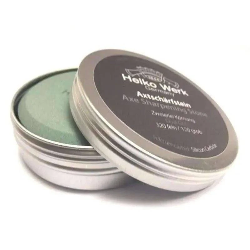 Helko Werk’s Axe Sharpening Stone is the perfect field sharpening tool. The contoured shape is easy to grip and allows for safe, simple sharpening. Our stone’s dual-grit design offers a coarse side (120 grit) and fine side (320 grit). The coarse side should be used to restore dull edges, while the fine performs finer sharpening.