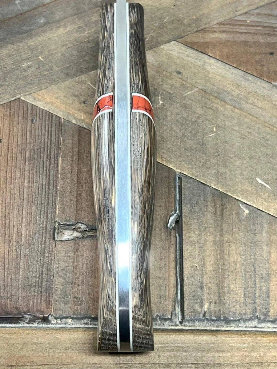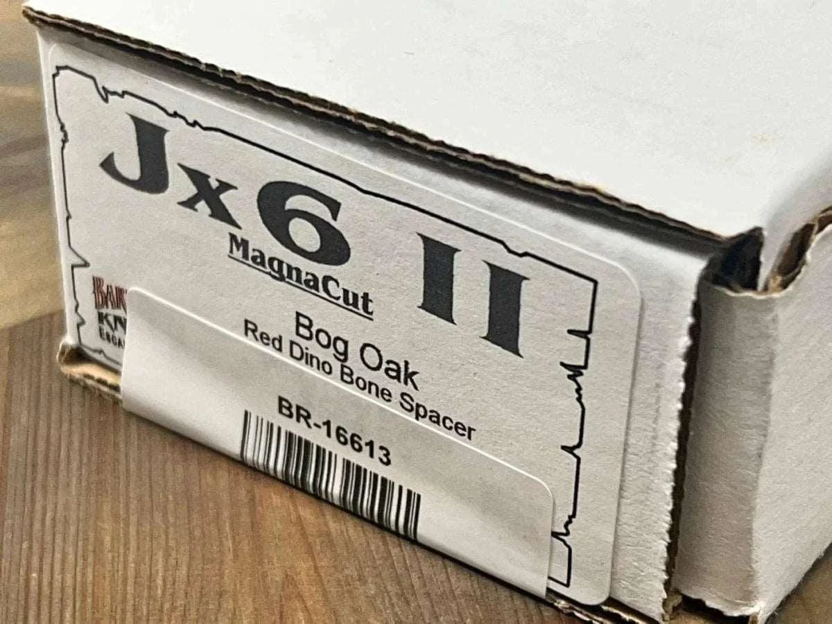 This beautiful and new Bark River JX6 II Blade is a bit larger than the original JX 6 and comes with ultra premium MagnaCut blade steel with premium bog oak handles with dino bone spacer and white liners with unique mosaic pins! We like the feel of this larger blade and will suit most Outdoor/Bushcraft Tasks.