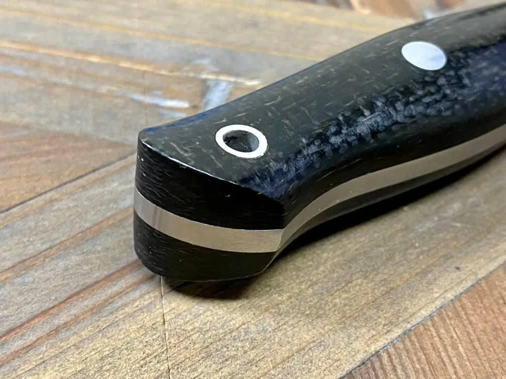 CruWear steel has incredible toughness (lateral strength), improved edge retention (abrasion resistance) relative to A2 and much greater corrosion resistance than A2 all while only being a little tougher to put an edge back on. Built of a full tang frame with comfortable contoured handles in the industries widest variety of materials, this Barkie has garnered a near cult following for good reason.
