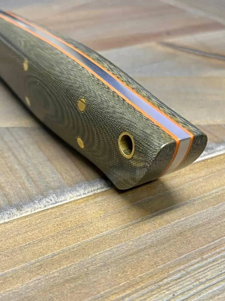 Bark River Puukko Knife with premium CPM 3V blade steel with Green Linen Micarta – Orange Liners.
