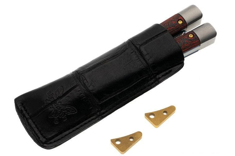 It all began with the majestic butterfly. The Balisong, an object of fascination for Benchmade’s founder Les de Asis, was meticulously crafted into the brand’s very first Balisongs in his personal garage. This innovation eventually evolved into an iconic American-made knife, giving rise to an entire sub-culture and, ultimately, a company renowned for its unparalleled craftsmanship. The Necron 99-242 exudes opulence and finesse as a premium, Gold Class manifestation of Balisong artistry. Showcasing Benchmade’s trademark latchless design with adjustable weights and brushed titanium extendable backspacers, the 99-241 boasts a devilishly chic Weehawk Damasteel Scimitar blade. Its handles are fashioned from luxurious FatCarbon in a stunning Lava Flow red, finished with a sleek black alligator leather sheath. Limited to only 500 units worldwide, the Benchmade Necron 99-241 is a true standout among premium collectibles.