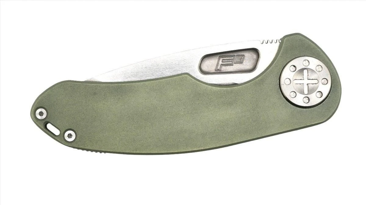 Check out this unique Curtiss F3 Medium Spanto Semi-Custom Non-Flipper Slim MagnaCut Blade with beautiful Hunter Green Handles. The Curtiss Knives F3 Series was born out of the need for a hardcore, quality, American-made folding knife. This custom F3 Large Slicer model is made using premium MagnaCut steel, caged bearings and the Curtiss Knives patented S.P.O.T. Pivot system. This non-adjustable system provides fast, smooth action and tight lockup without fear of debris becoming an issue. The jimping on the thumb ramp is milled to be functional but not uncomfortable, just one aspect you’ll grow to appreciate if you own this knife. The handle frames have a blasted and dark stonewashed finish as does the matching backspacer. The design combines several integral parts of a high-quality flipper into one piece for a cleaner and more sleek appearance and comes with a full lifetime warranty.