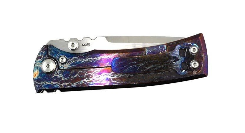 This Chaves Redencion Street is one of a kind and has been expertly heat anodized in blue lightning patterned handles with a beautiful clip to match. This meticulous process not only enhances the knife’s durability and functionality, but also adds a touch of sophistication and exclusivity to its ownership. No pattern is the exact same between any of these heat anodized knives.
