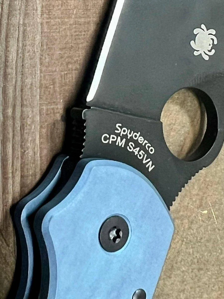 This Custom Spyderco Para 3 Knife 3″ with S45VN Black Blade has been fitted with premium Titanium Handles, Ti Backspacer and a deep carry Titanium Clip and Anodized in beautiful “Nautical Night” colors by the NRO Team.