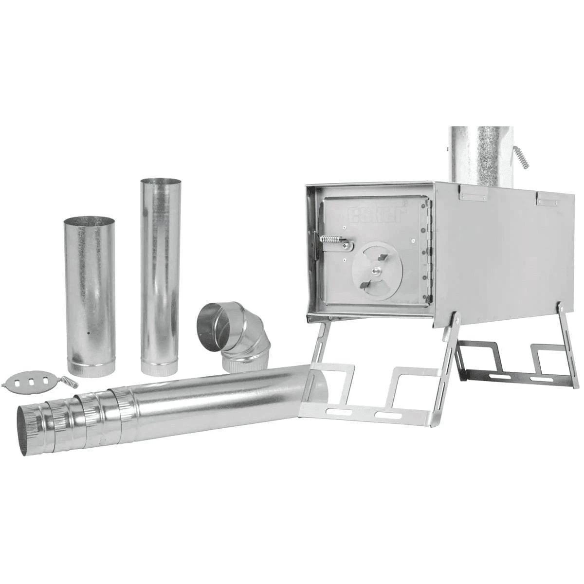 Lets introduce the all American Esker Superior 2 Winter Tent Stove by Kni-Co. Featuring a large, 56.7L stove box, nesting galvanized pipes, and Esker’s specially designed snow float legs; for stabilizing the stove with branches or poles. All stove pipes stow inside the stove box and Esker legs fold up for light and easy transport. The included damper and draft control on the stove door makes for precise and quick temperature regulation, and the 22 gauge cold rolled steel makes for a lightweight yet sturdy stove. The Esker Superior 2 model features an adjustable pipe elbow to accommodate variable angle pipe stacks. Pair this stove with the Esker 12×12 Classic 2 Winter Tent and get your group out to make the most of your winter outdoors.