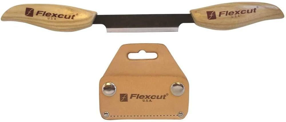 - Full-Length Draw Knife with Leather Sheath Holder – 12 1/8″ overall. 3″ high carbon steel draw blade. Developed for fan carving but works great for skinning bark and roughing-off corners. Ergonomic hard wood handles. Tan leather blade cover sheath.