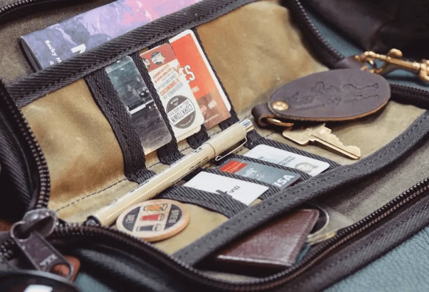 A wrist strap helps to secure the Clutch to the hand, but can be removed if desired. A sturdy zipper lets you open it up like a clamshell and get full access to the many card slots and the two larger pockets suited toward cash, checks, phones or whatever else you need to carry. A narrow set of slip pockets along the inside spine are perfect for small pens or items with pocket clips like a small flashlight. Features a body built from our signature 18oz waxed canvas for rugged reliability.