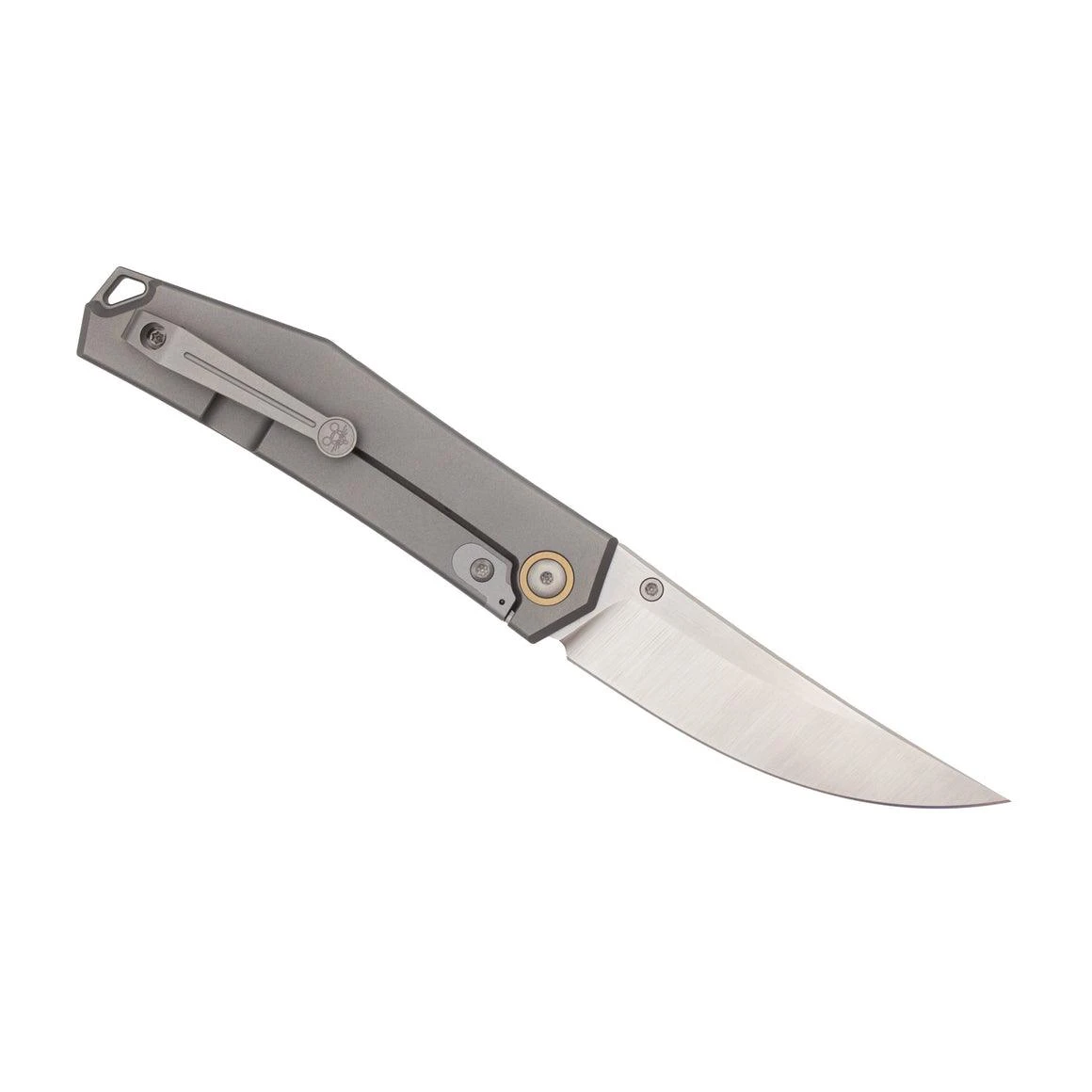 Just like his little bro, the GMX embodies the fusion of Scandinavian and Japanese design with a touch of Persian influence, but with the added moxie you’d expect in a GM Line knife. This baby’s got an integral Titanium handle with a brass inlaid bolster that’s cooler than Miles Davis on a hot tin roof, and an S90V blade that’s never been seen before on a GiantMouse knife – so you know you’re getting the top-notch goods.