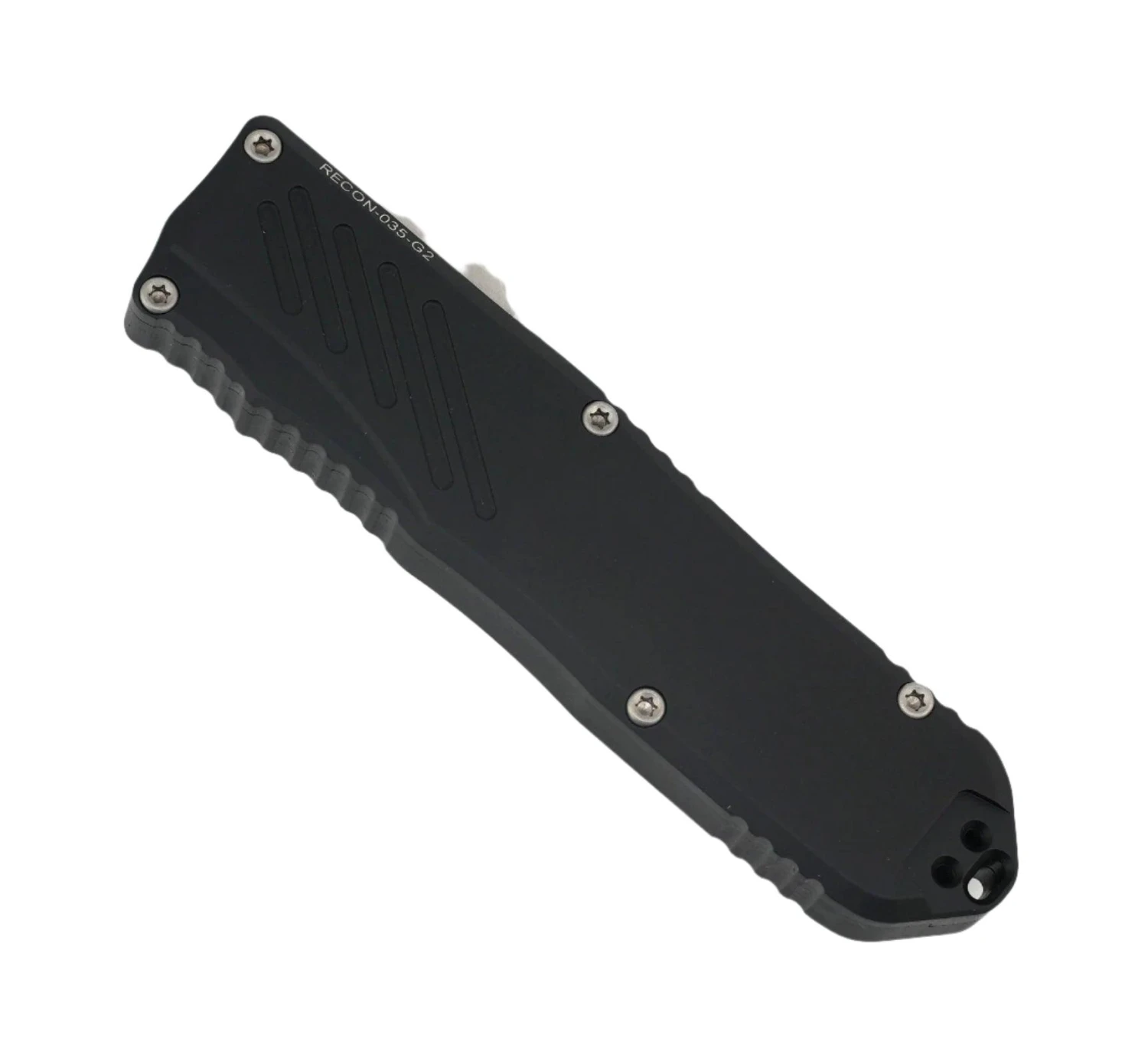 Guardian Tactical’s patented OTF mechanism provides smooth, responsive opening action. The unique thumb slide design is separated from the aluminum handle by a steel plate and 3 ceramic balls that eliminate grinding and wear. An innovative locking mechanism sits off to the side of the blade channel so it doesn’t drag against the blade when opening and closing. These features eliminate the friction on the blade and button that have always plagued OTF knives. Take your OTF game to the next level with the Guardian Tactical RECON-035.