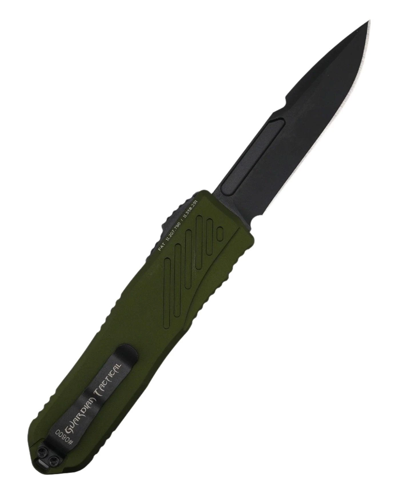 The Guardian Tactical RECON-035 G2 redefines the standard for OTF automatic knives. Its innovative mechanism effortlessly opens and closes the blade, reducing friction and wear. With its MagnaCut steel blade and sleek, tactical design, this knife combines strength and style. The Recon-035 G2 is 8 inches long when open and 4.50 inches when closed, with a 3.375-inch spear-point blade in a striking all-black finish. The Type III Hardcoat Anodized Aluminum handle is approximately 7/16 inches thick and features milled traction for a secure grip. The thumb slide, riding on a stainless steel plate with ceramic balls, adds even more smoothness to the operation. All hardware is finish matched and the knife includes a reversible pocket clip for convenient carry and a lanyard hole for added versatility. Trust in the Guardian Tactical RECON-035 G2 to exceed your expectations and elevate your knife game to the next level!