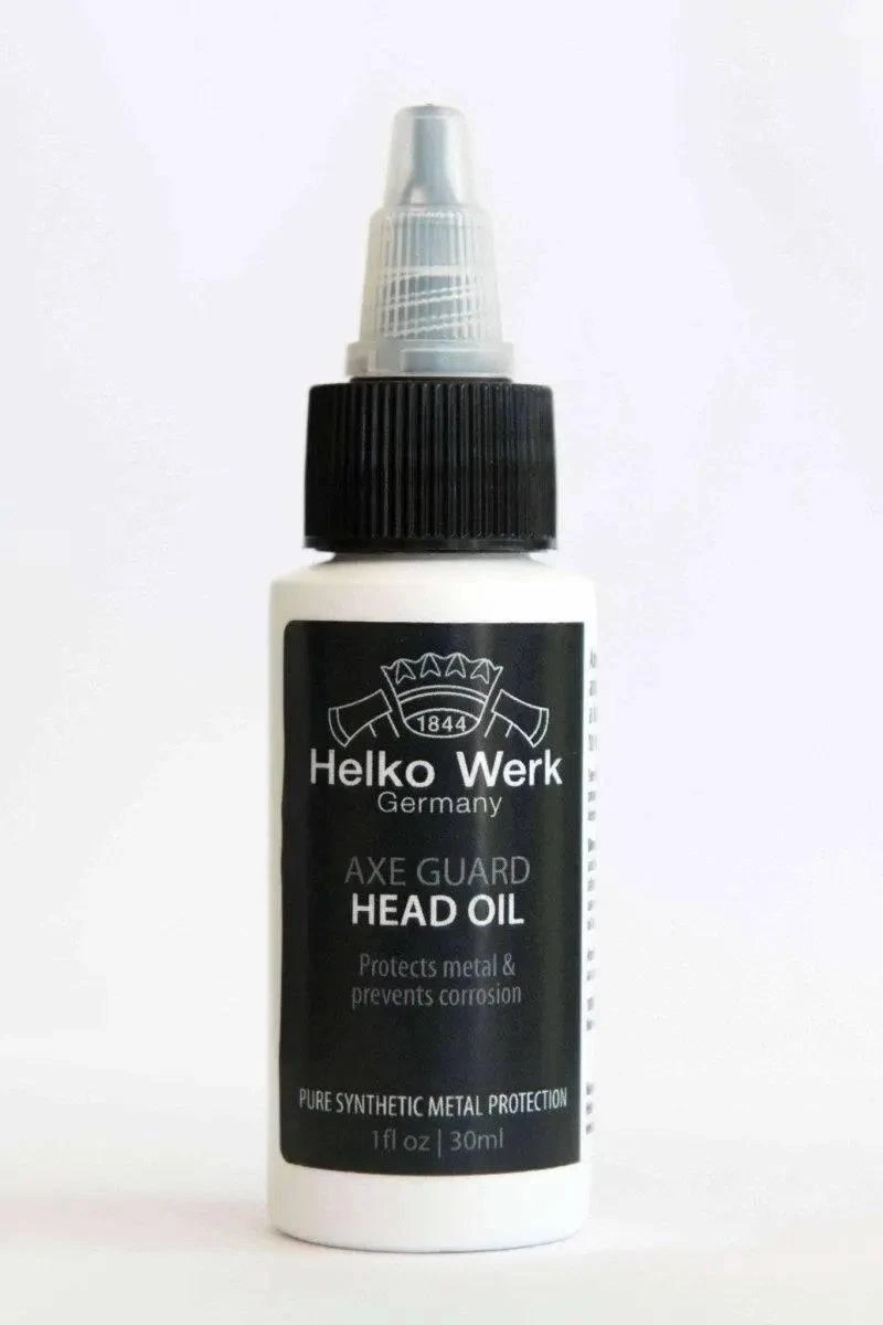 Our axes are made from the finest German C50 high grade carbon steel. This type of steel is ideal for axe heads, but like all carbon steel, it is susceptible to oxidation and rust if not properly cared for. Rust is easily prevented by keeping the axe head well oiled. To use Axe Guard, simply apply to the metal surface with a rag, allowing time for the oil to penetrate. The oil should be applied after using the axe and before storing. If rusting does occur, use a wire brush or steel wool to remove it, and then apply Axe Guard as above.