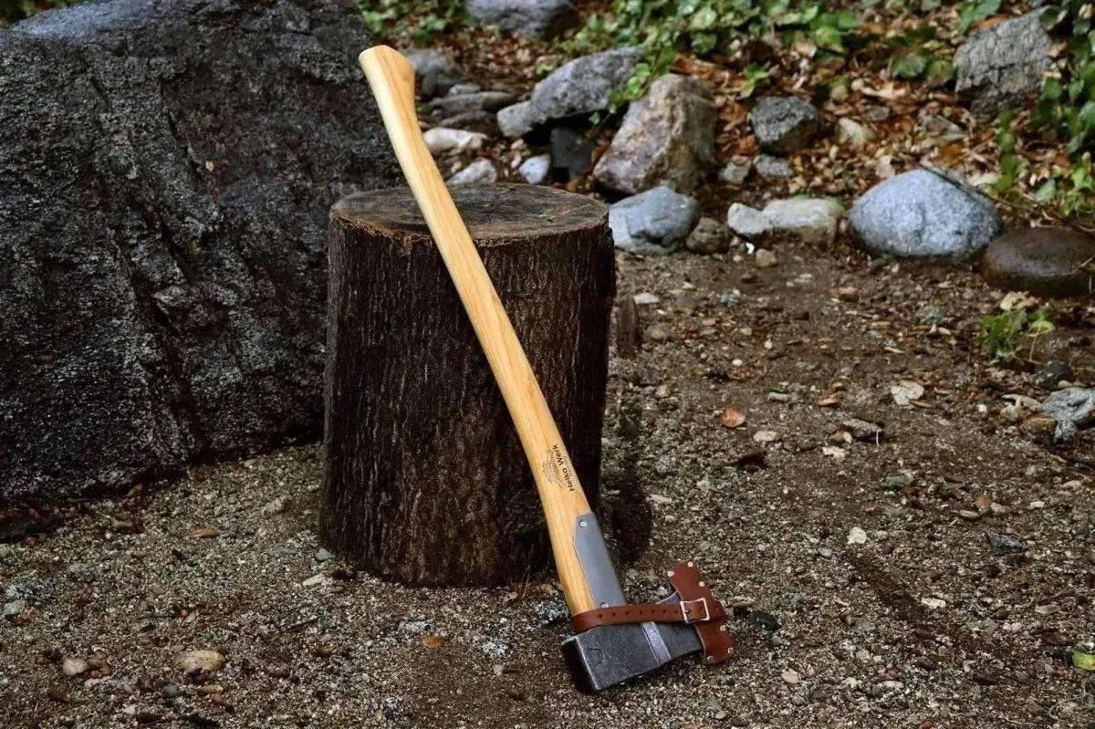 The Saxon Splitter is a heavy duty splitting axe, best reserved for large rounds and difficult logs. The Helko designed head delivers powerful strikes without getting stuck or pinched up in the wood. The Saxon has the splitting power of a maul, but has the balance, feel, and control of an axe. The small turnaround hook on the heel (bottom edge of the blade) can be used for log moving. The steel overstrike protector provides protection from miss swings, reducing the possibility of shaft wear and breakage.