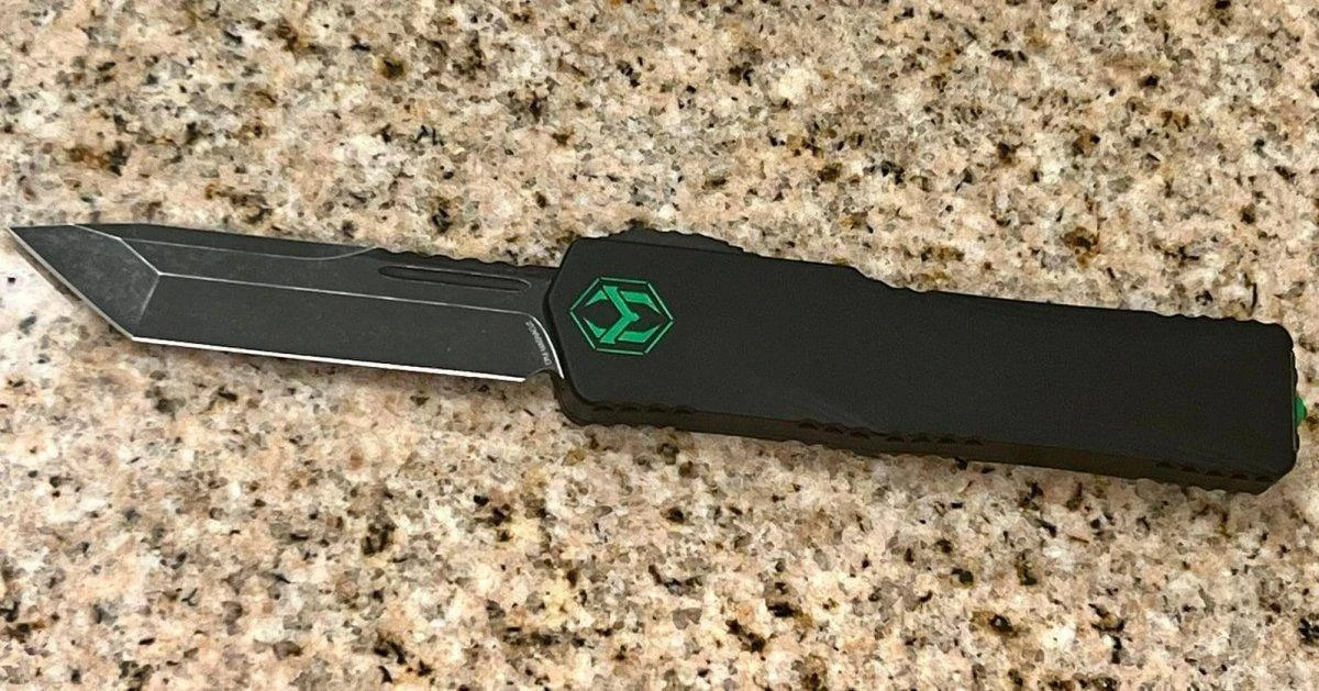 This Blade Show 2023 model features black slab aluminum handle scales with the Heretic logo deep engraved and filled with green on the front. Battle black finished CPM-Magnacut stainless steel tanto blade with standard cutting edge. Battle Black finished hardware and pocket clip. The side of the frame is etched with the Heretic logo, model information, and Blade ’23 USA. Brand new in box.