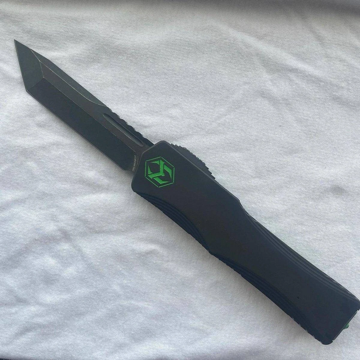 Heretic Knives Colossus T/E Blade Show ’23 Black Slab Handle w/ Deep Engraved Heretic Green Logo Battle Black Blade