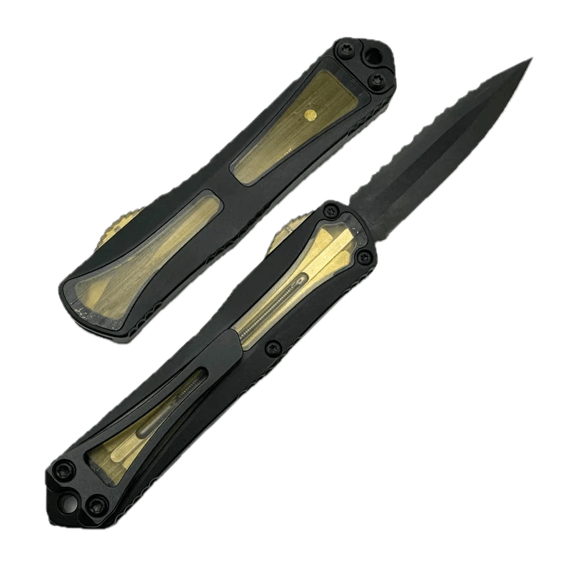 The Manticore S is Heretic Knives’ smallest OTF offering of the Manticore Series. This knife is 100% USA-made and assembled, backed by a lifetime warranty so you can rest assured that this OTF will last. It features silky smooth one-handed deployment and retraction action which is standard in the Manticore line. The S variation features a compact double-edge dagger blade, an integrated lanyard hole, a hardened steel glass breaker, and a deep carry clip. Its slender profile and feather-light nature allow it to be easily carried close at hand and ready at a moment’s notice. The action is addictive, the ergonomics are spot on, and the build quality is top-notch. You won’t be disappointed.