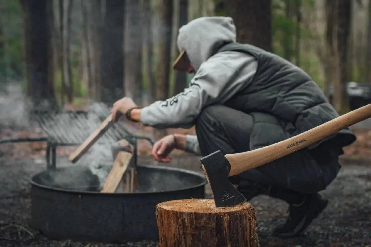 - As part of the hand grinding production process, the steel is struck multiple times thereby increasing its density and resulting in more durability of the axe.