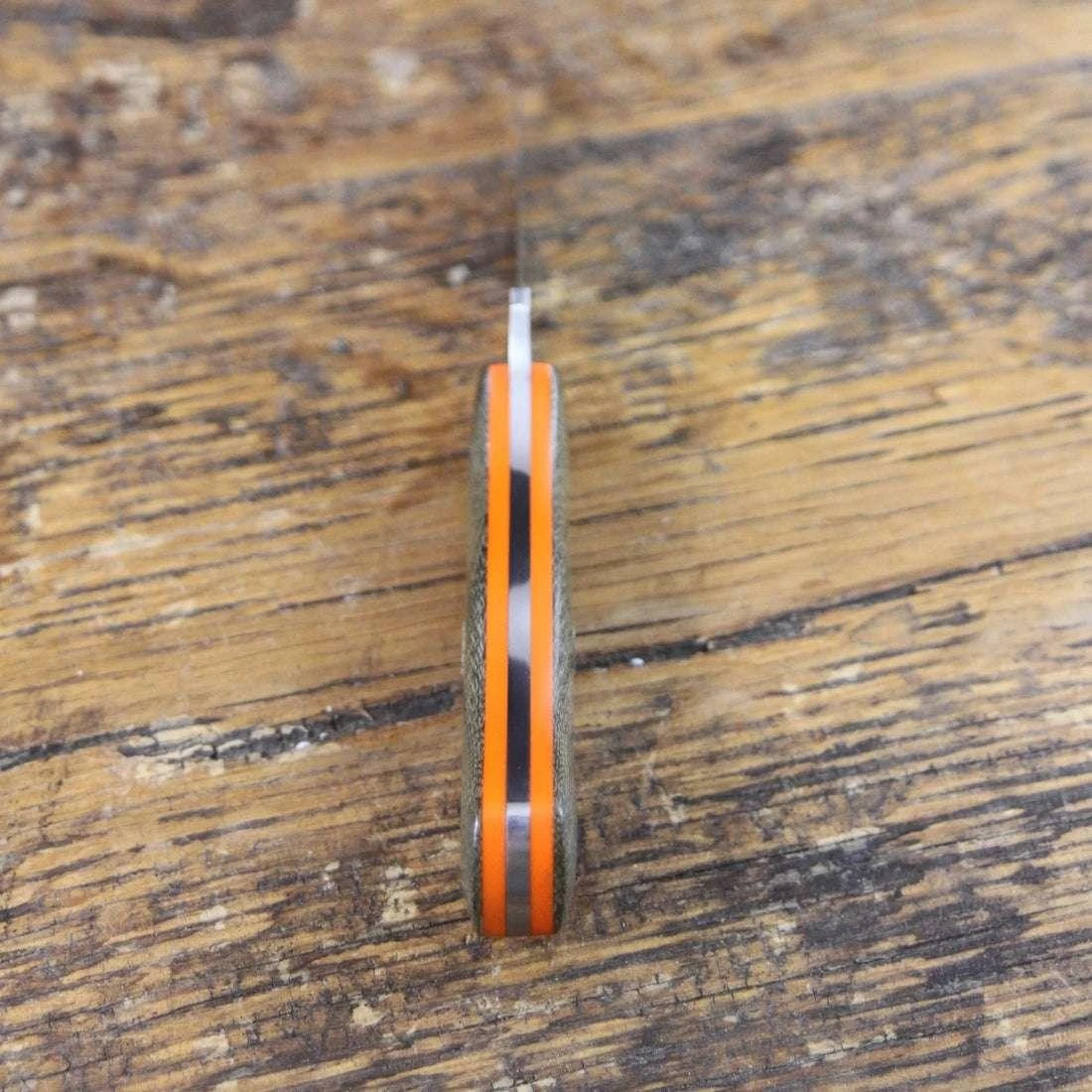 - Handle Material: Green Canvas Micarta and Blaze Orange G-10