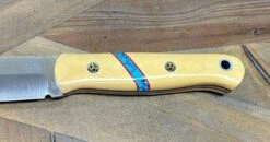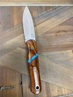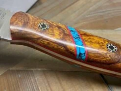 Bark River Bushcraft Scout Knife MagnaCut Desert Ironwood Burl Turquoise Spacer Mosaic Pins (USA)