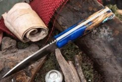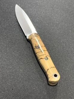 Bark River Bushcraft Scout Knife MagnaCut Dark Curly Maple Brass Mosaic Pins (USA)