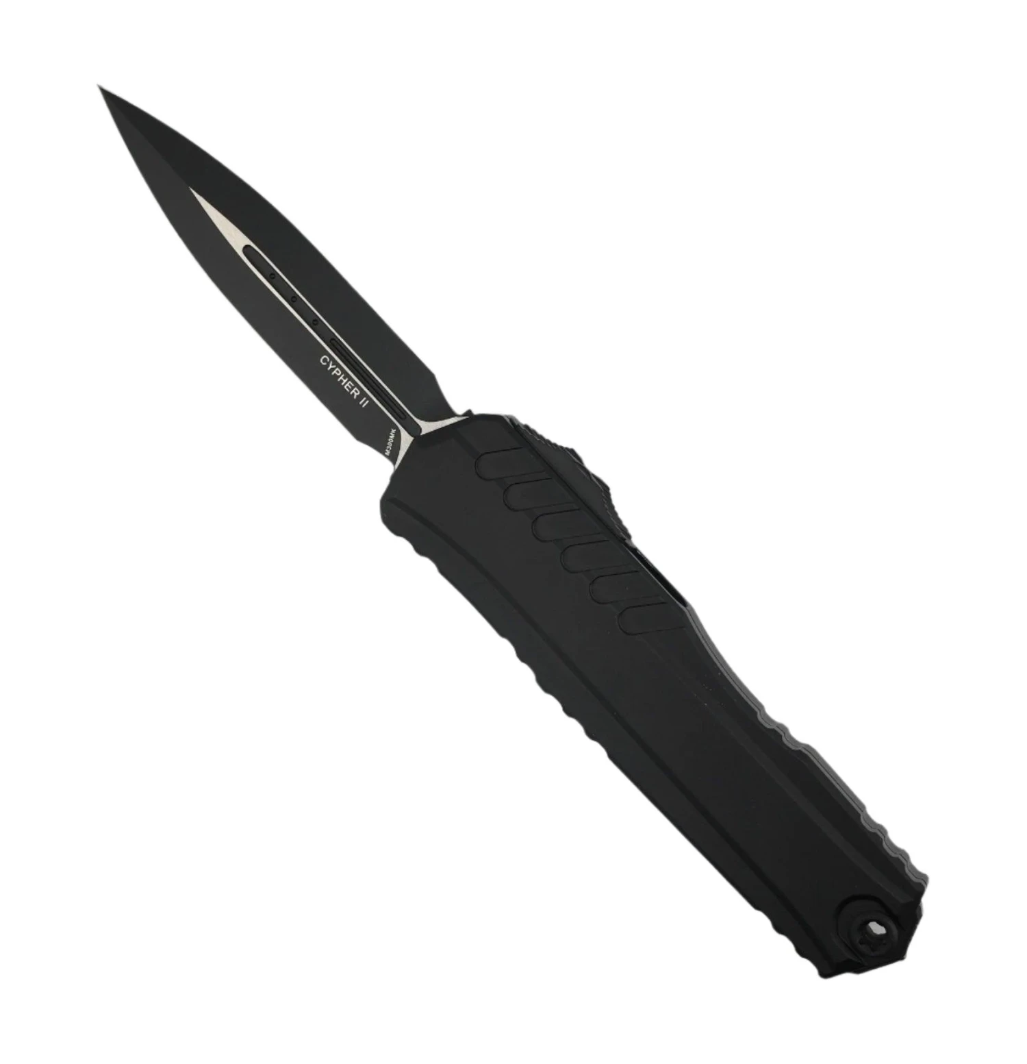 The Cypher has been refined, meticulously reengineered for a new era of out-the-front knives. The innovative dual fuel drivetrain ensures effortless actuation, providing a smoother action than ever before. Thoughtful details enhance both aesthetics and functionality. Stylish jimping on the chassis delivers a touch of sophistication and improved grip. The 6AL4V pocket clip with ceramic detent ensures secure and convenient carry options. The screwless body, integral glass breaker, and updated button pocket design contribute to a streamlined appearance and enhanced practicality.