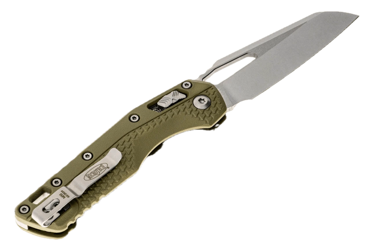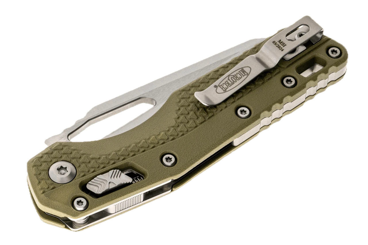 Released in 2023, the MSI (Microtech Standard Issue) is Microtech’s first knife to feature its fantastic RAM-LOK technology. This tough take on the crossbar lock features Microtech’s signature step pattern made famous by the actuation switches on the Ultratech series. The large blade cutout gives ample room for reverse middle finger flicks as well as standard slow-roll thumb opening with or without gloves. If neither of those is your preference, then simply pull down on the RAM-LOK and the blade flies open with a simple wrist flick. The injection molded handles are smooth and slightly tacky, providing great grip potential in both standard and reverse grips. Rugged, durable, extremely high-value, and made in the USA; we know that the MSI is going to quickly become a fan favorite among all members of the knife community.