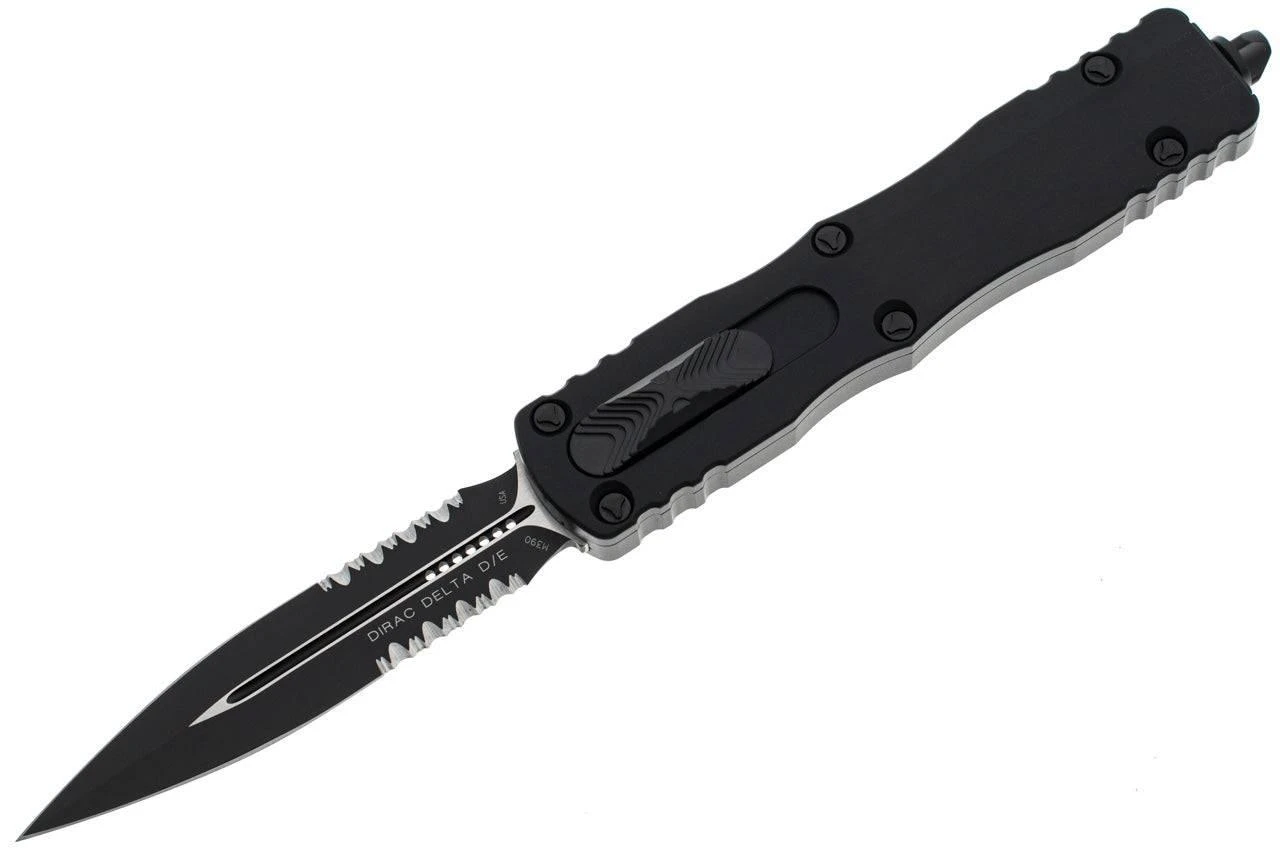 The Dirac is the first Microtech double action knife with a cover firing slider. The extremely ergonomic chassis features curved lines similar to the HALO for a slightly different feel, compared to other handles. They researched this particular OTF design and applied their signature ultra-high tolerance Microtech features such as proprietary hardware, innovative internal mechanism, and glass breaker. With an overall length of 9.4-inches, the Dirac is just right for an everyday or tactical knife.