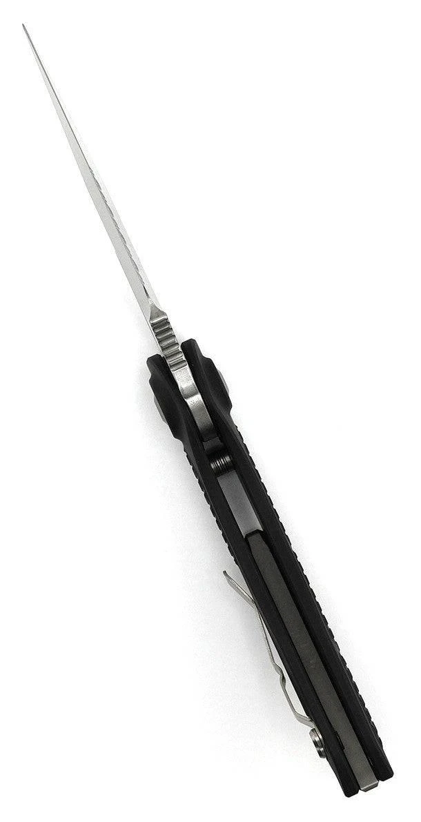 This Automatic Stitch is a beautiful, tactical collaboration between Tony Marfione and Sebastijan Berenji, AKA Borka. It takes Sebastijan’s awesome Stitch design and pairs it with Tony’s awesome automatic opening mechanism to create one of the coolest production collaborations of 2017. The 3.625″ spear point blade features a flat grind, apocalyptic finish, and jimping on the finger choil and thumb ramp for excellent purchase during finer cutting tasks. The handle is heavily milled aluminum with a black Mil-Spec Hardcoat anodized finish and jimped aluminum backspacer. It fires out like a rocket and locks up tightly, which considering that this is an AUTO is an impressive feat. This is the long-awaited production model of the famed custom, making it your chance to have a Borka knife at a fraction of the cost.