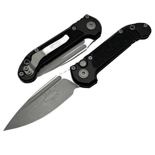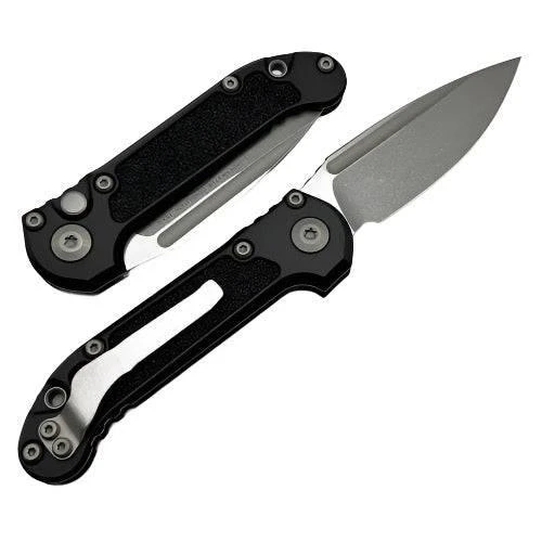This model features a black anodized 6061-T6 aluminum handle with black 3M grip inlays. Apocalyptic finished M390MK stainless steel drop point blade with a standard cutting edge. Torx hardware and tip up pocket clip. The blade is marked with the model information and Microtech logo. The pocket clip is also marked with the Microtech logo. Brand new in box.