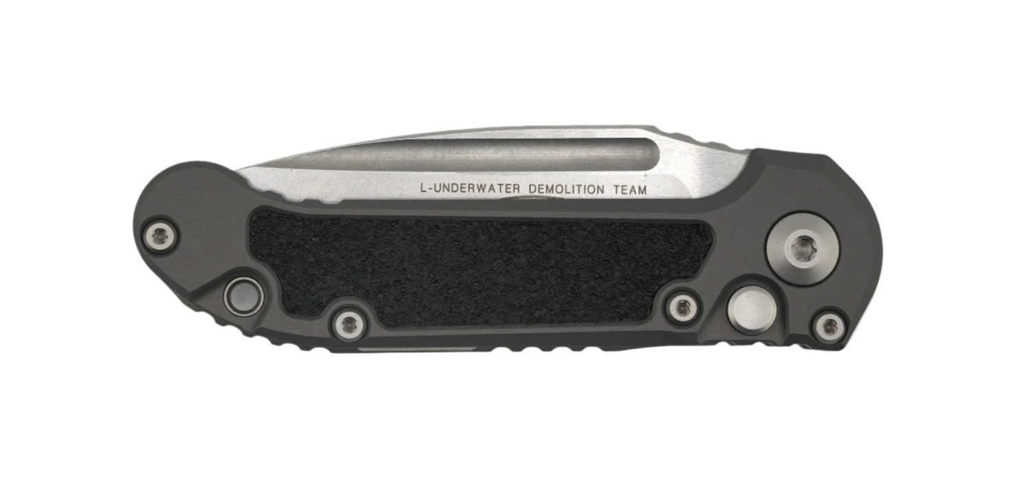 This model features a natural clear 6061-T6 aluminum handle with black 3M grip inlays. Stonewashed finished M390MK stainless steel drop point blade with a standard cutting edge. Torx hardware and tip up pocket clip. The blade is marked with the model information and Microtech logo. The pocket clip is also marked with the Microtech logo. Brand new in box.