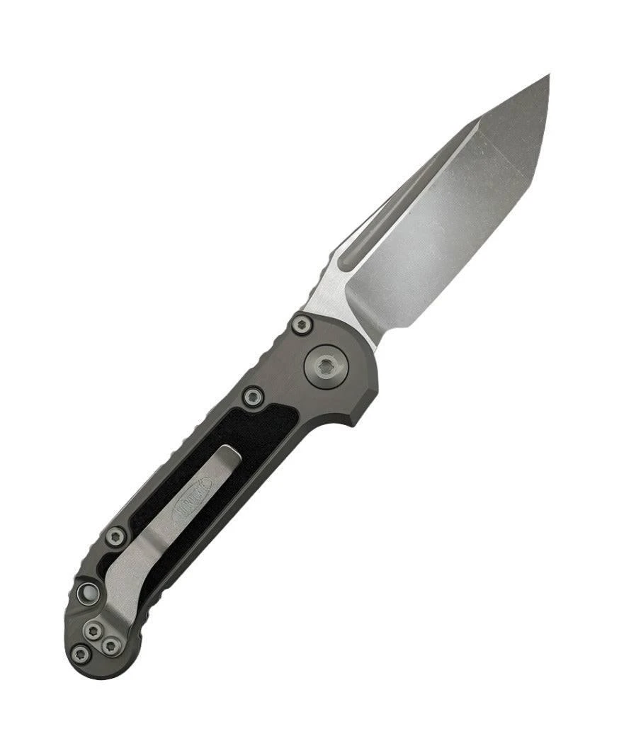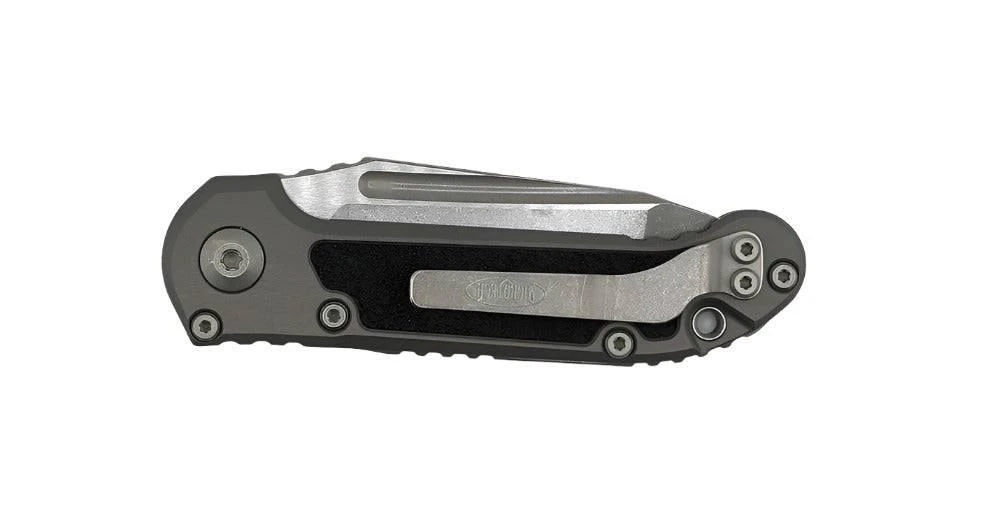 This model features a black anodized 6061-T6 aluminum handle with black 3M grip inlays. Apocalyptic finished M390MK stainless steel drop point blade with a standard cutting edge. Torx hardware and tip up pocket clip. The blade is marked with the model information and Microtech logo. The pocket clip is also marked with the Microtech logo. Brand new in box.