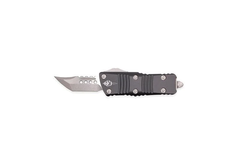 Microtech’s Troodon knife has been shortened up and is now available in this California legal Mini Troodon! Named after the Troodon dinosaur, this knife was Microtech’s 2006 flagship out-the-front knife design. The Troodon handles feature grooves for added grip-ability. The Troodon is similar in size to a UTX-85 but with a wider and slimmer handle that feels more robust. Recently released but this one has quickly become a favorite EDC among people that need a small knife wit a solid feel!