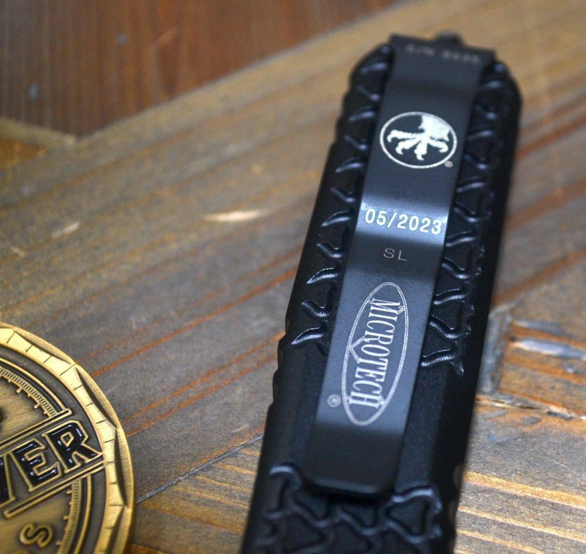 The Ultratech, will forever set the standard for all out-the-front knives. The Ultratech is Microtech’s original dual action out-the-front knife, and has been the foundation of their entire OTF line. Over the years, it has gone through several modifications, each time becoming more efficient and reliable. This version has the improved tri-grip texturing on the handle and thumb slide for more positive purchase and a gorgeous red blade to make it look like a lightsaber. It also features a very cool two-tone ringed design on the handle screws, glass breaker and thumb slide. The Ultratech’s spring remains in an “at rest” position at all times except when deployed. This ensures that the compressed spring will not become fatigued, assuring users that when the knife is fired, it will operate effectively. The Ultratech’s light weight, one handed open and close action, slim shape and scalpel sharp, double edge blade make it a one of a kind knife, only available through Microtech. This knife has proven time and again that it can withstand any obstacle and this one takes the cake for looks, hands down.