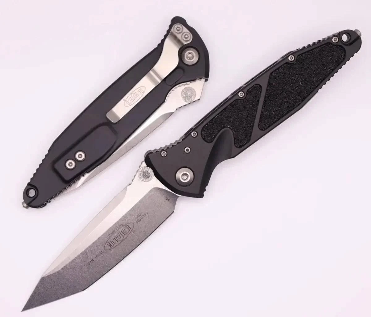 The Microtech Socom Elite offers the high-end performance Microtech is known for in a manual operation, full-size tactical folder . This version features a Tanto point blade in stonewash finished CTS-204P and Black aircraft grade aluminum handles with traction inserts.