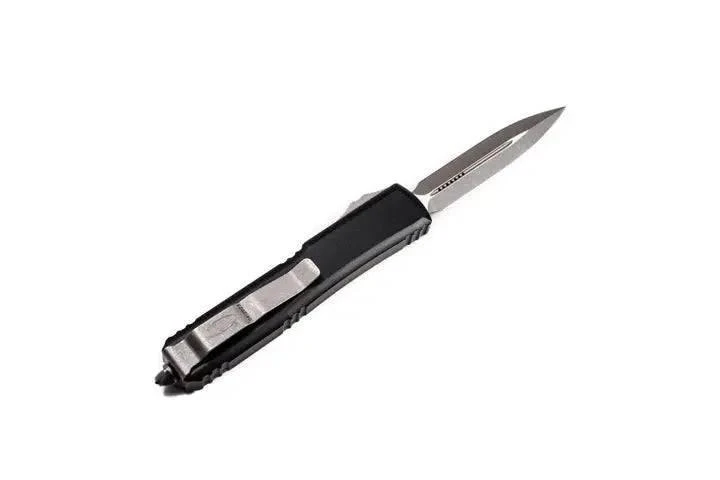 Microtech 122-10AP Ultratech Auto OTF 3.46″ Apocolyptic Double Edge Dagger Blade, Black Aluminum Handles