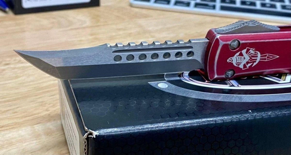 Microtech 119-10 Ultratech Hellhound Signature S/E Distressed Red Handle blade is the flagship model of Microtech’s OTF lineup, the Ultratech sets the standard for OTF technology. Proprietary technology allows the firing spring to be at rest in both the open and closed positions, drastically reducing wear on the internal firing mechanisms. The contoured chassis handle provides a lighter and more ergonomic feel and comes in a smooth, flat finish as well as machined tri-grip pattern.