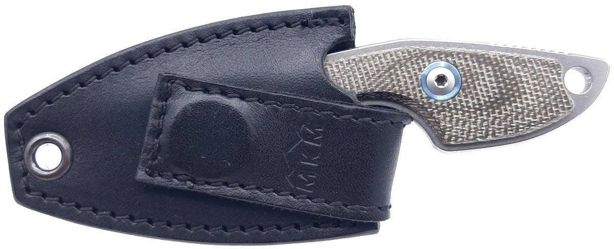 Each includes a leather sheath with a magnetic closure system so the knife can be carried both in the pocket and as a neck knife thanks to the leather cord is included in the package. The sheath is ambidextrous both for right and left-handed persons.