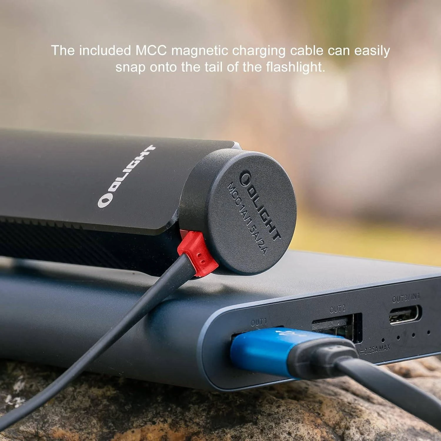 - [Magnetic Charging] Powered by a built-in rechargeable battery, the charging cable easily snaps onto the tail of the EDC flashlight