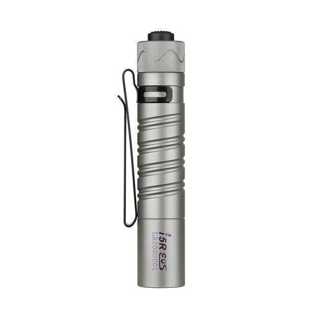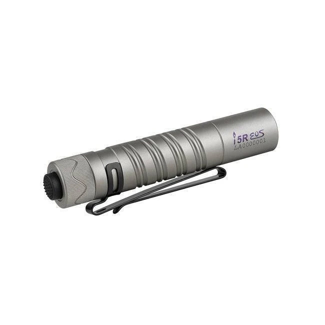 The i5R EOS Ti is the rechargeable version of i5T EOS, one of our most popular tail-switch EDC flashlights. It adopts a customized 1420mAh Li-ion battery with an integrated USB Type-C interface for charging. The high-performance LED, paired with a PMMA lens, produces a soft and balanced beam up to 350 lumens. Like the i5T EOS, it features a tail switch, aerospace grade aluminum alloy body, unique double helix knurling, and a two-way pocket clip. The i5R EOS Ti is the perfect upgrade with higher performance and a rechargeable design.