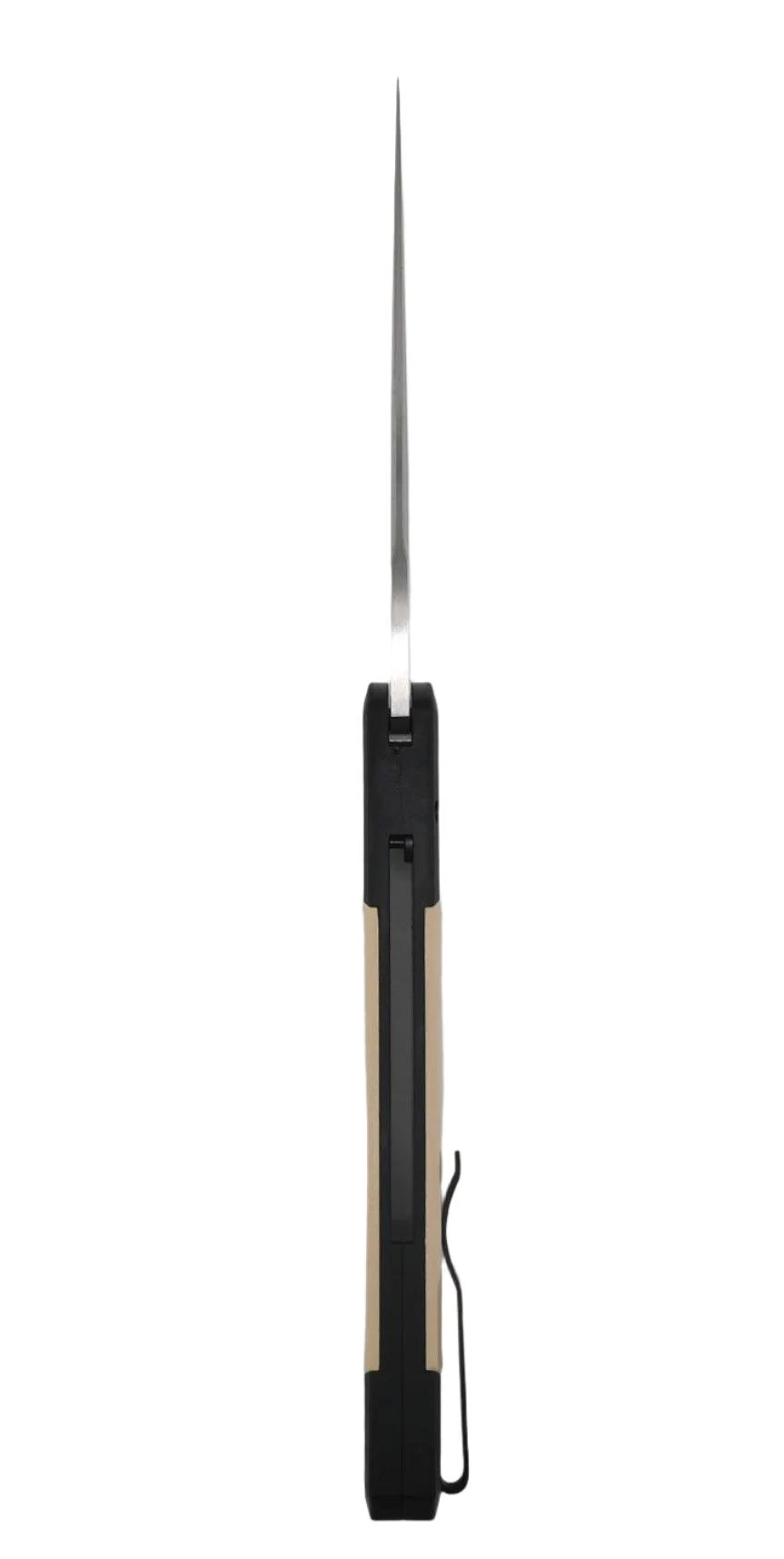 - Handle: Black-anodized aluminum handle with ivory micarta inlays.