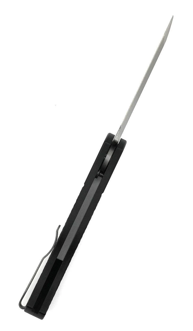 The action is super strong yet smooth. It has a nice kick when the blade deploys. The first time the Emerson/Pro-Tech CQC7 was seen outside of the shop was at the PKA (Professional Knife Maker’s Association) show in Denver, Colorado where it won the Best Collaboration Award. This model features a 3.25″ bead blasted tanto blade made from 154CM stainless steel with a chisel grind and black aluminum handles.