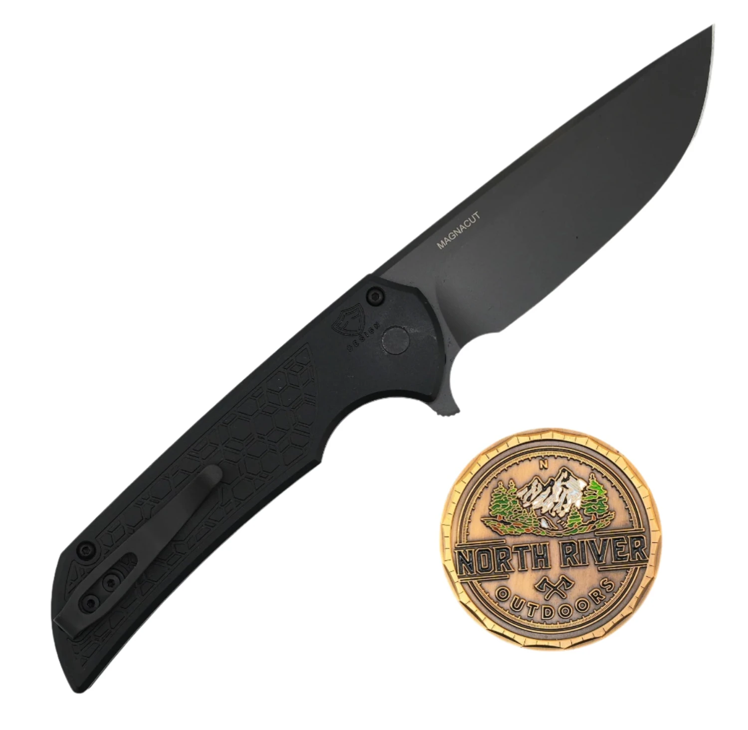 *** Unique Gridlock Textured Black Handles with DLC Black MagnaCut Blade ***