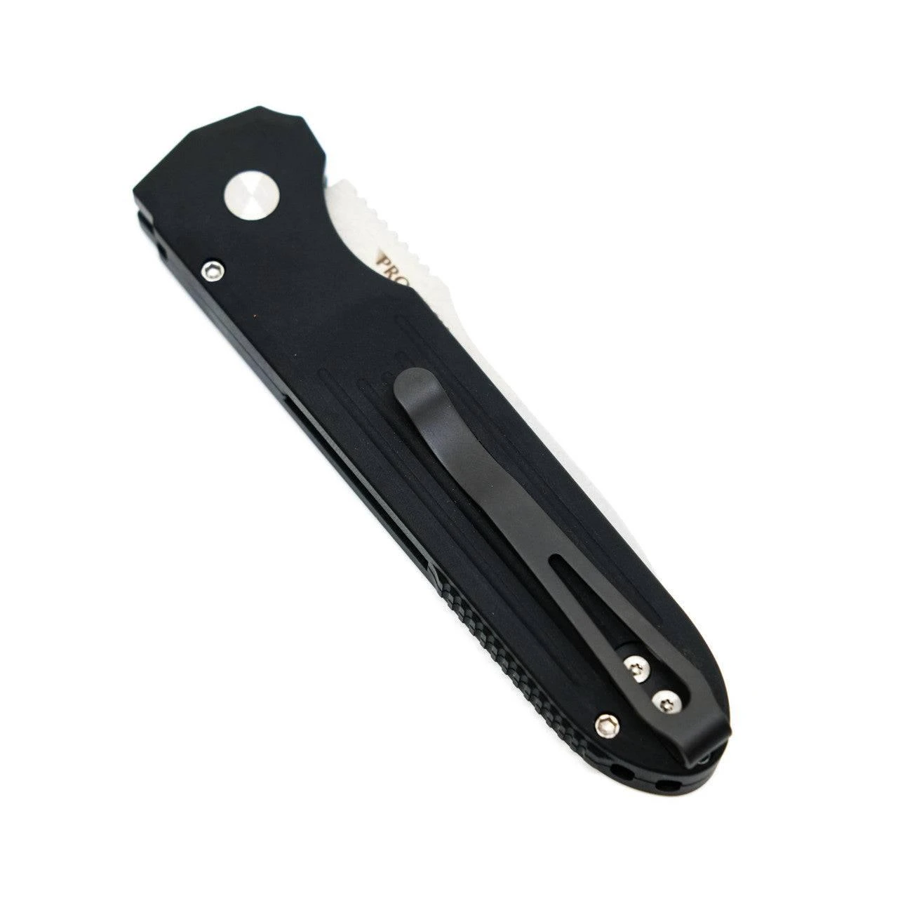 A black handle, stonewash blade, and a red g-10 inlay push button create an intimidating appearance. This distinctive folding knife was originally designed for military and law enforcement officers and is outfitted with Pro-Tech’s renowned fit and finish.