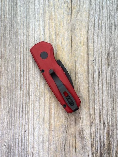 The Runt 5 has a CA legal blade crafted in premium CPM-Magnacut blade steel with a beautiful red anodized aluminum handles. Pro-Tech is widely known for making some of the very best out-of-the-side automatic knives, and the RUNT is up there among there favorites. This little knife has “big knife” feel and action, with a lightening fast blade deployment and snappy readiness that can only come from the master knife makers at Pro-Tech.