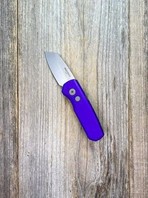 The Runt 5 has a CA legal blade crafted in premium CPM-Magnacut blade steel with a beautiful purple anodized aluminum handles. Pro-Tech is widely known for making some of the very best out-of-the-side automatic knives, and the RUNT is up there among there favorites. This little knife has “big knife” feel and action, with a lightening fast blade deployment and snappy readiness that can only come from the master knife makers at Pro-Tech.