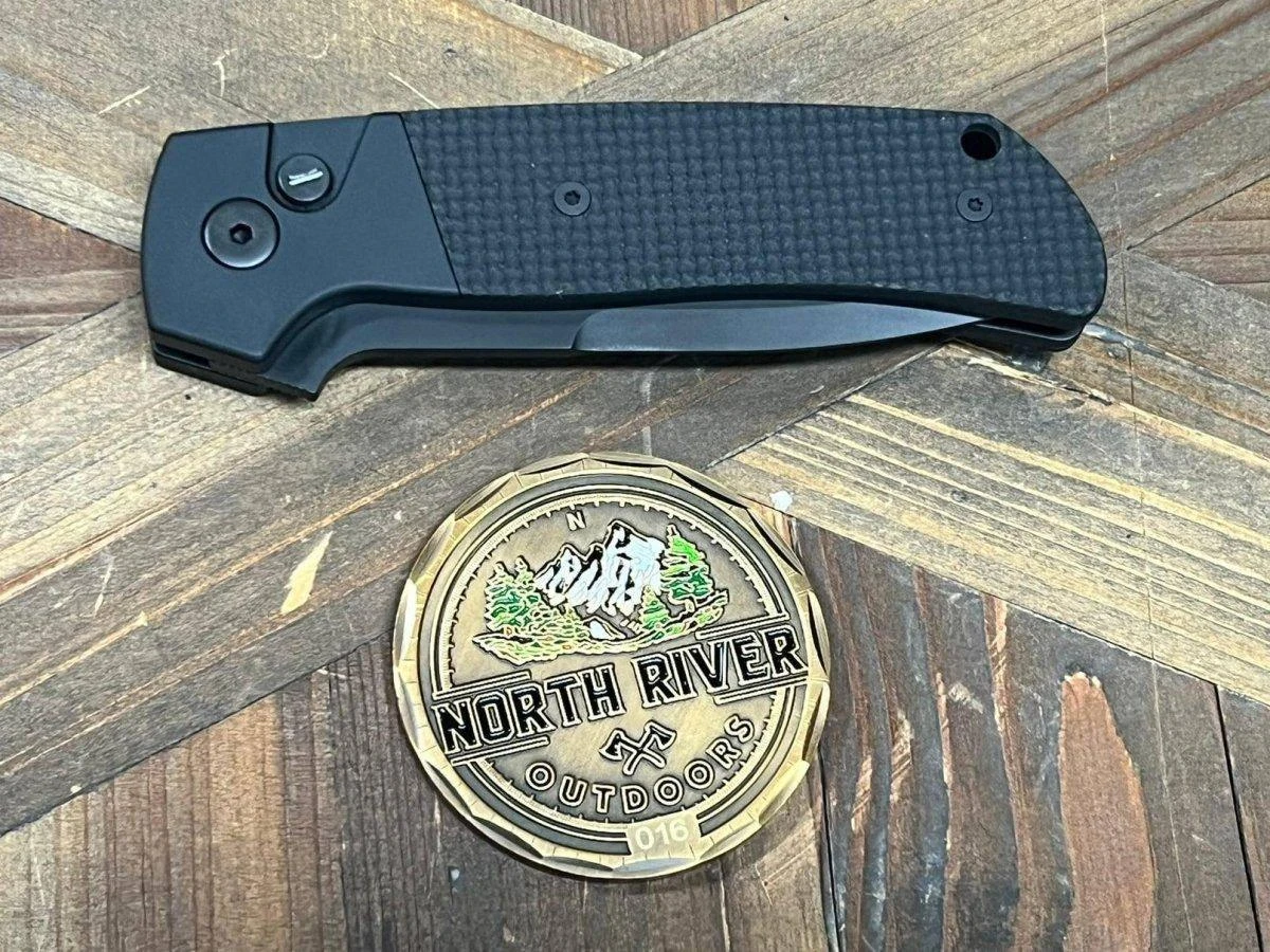 BLADE SHOW EXCLUSIVE! Pro-Tech Terzuola ATCF OPERATOR Automatic (BT2715-OPERATOR) – 3.45″ DLC Black Magnacut Drop Point Blade, Black Titanium Handle with Textured G10 Inlay, Tritium Button, 3D Titanium Milled Clip
