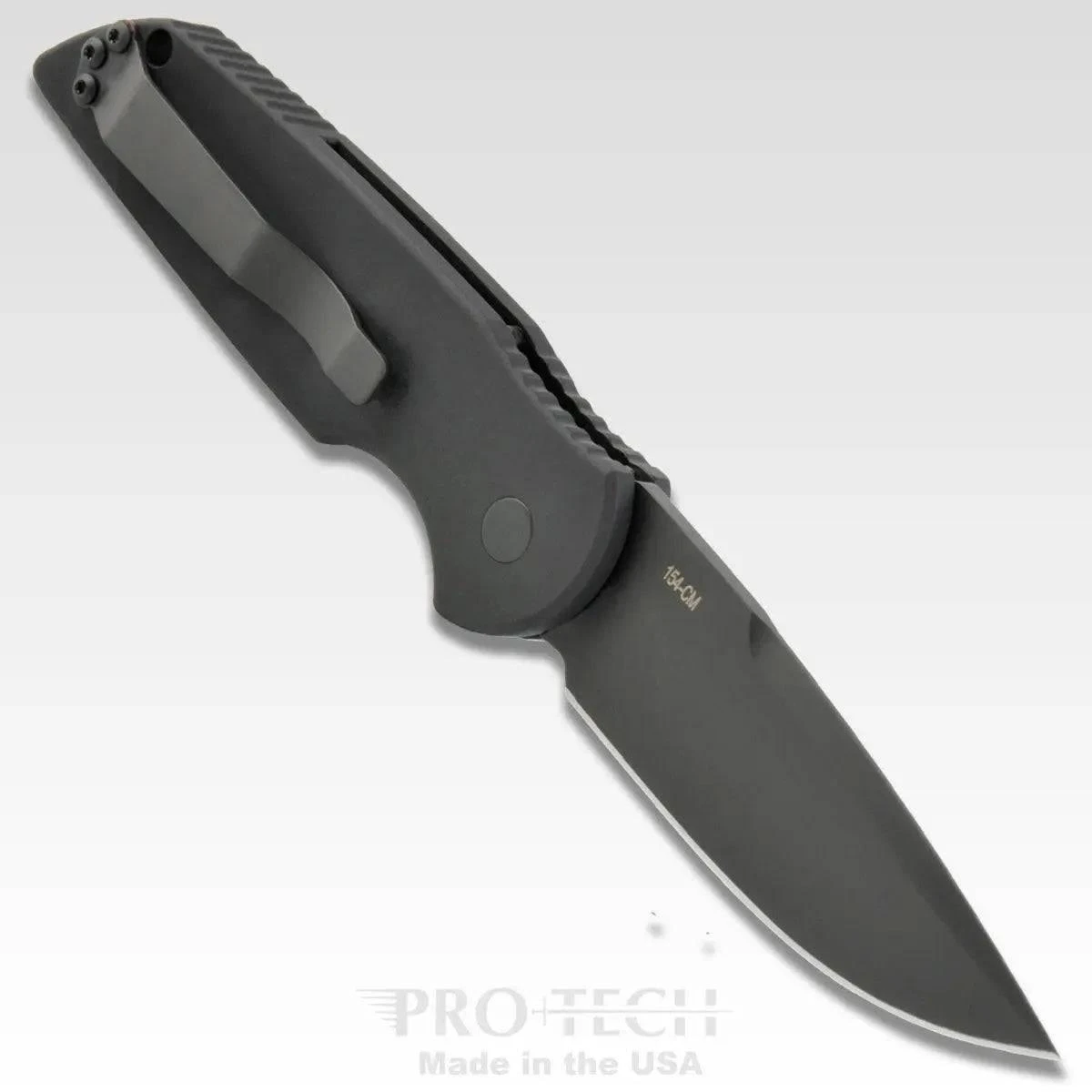 Protech Godson has a bead blast finished 154-CM blade with a plain edge. The handle is solid black anodized T6-6061 aluminum. Bead blast finished tip-up pocket clip for easy carry.