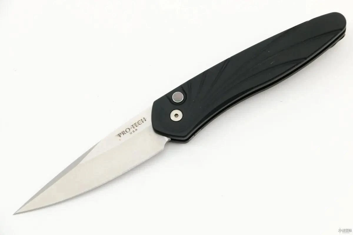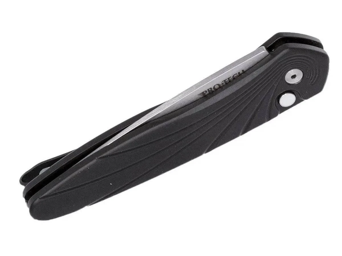 Pro-Tech Newport Black 3D Wave Handle Stonewash Blade Pearl Button 3436