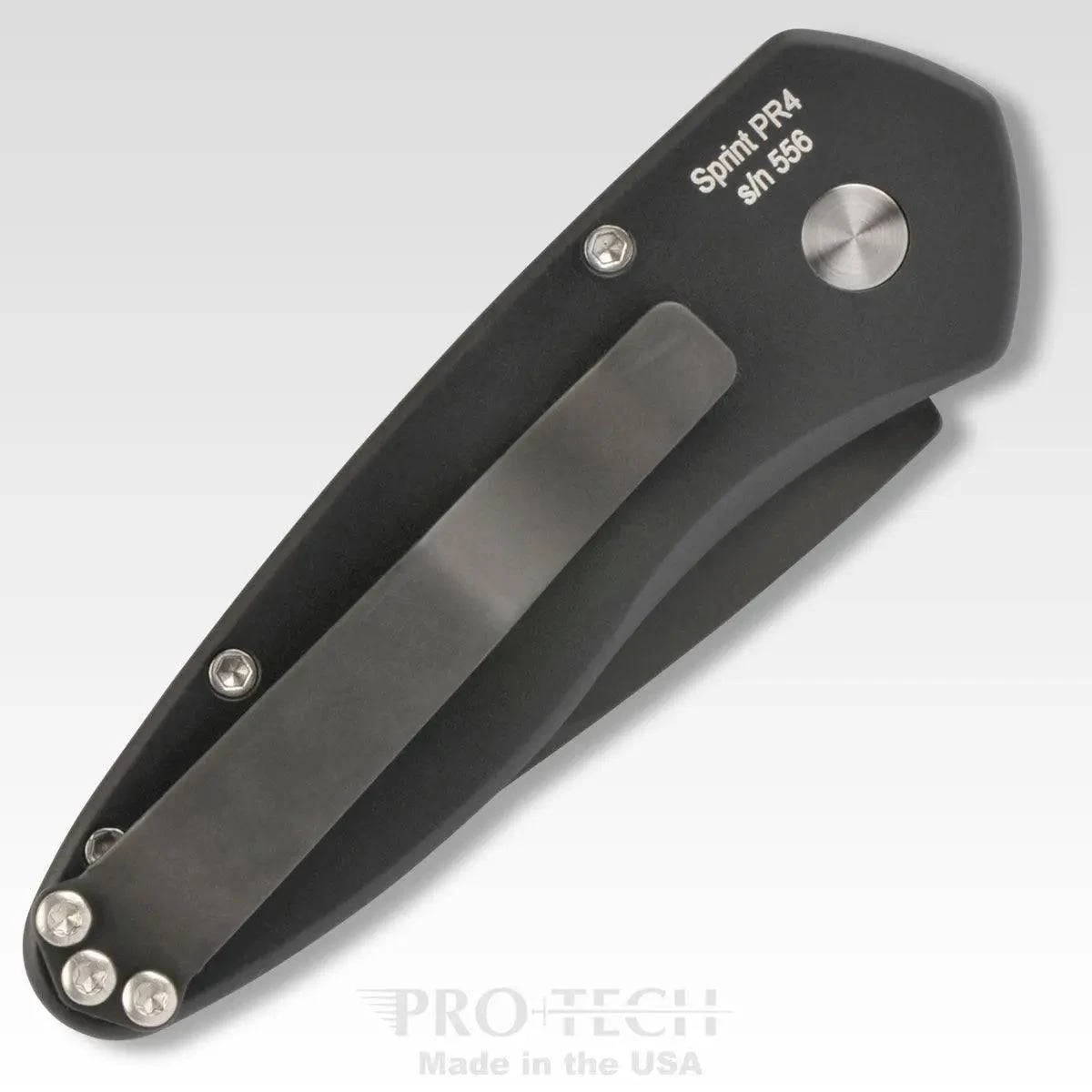 Sprint knife is a slim and sleek design with superb action and a top-notch build. This knife has a black finished S35-VN steel blade that opens via the recessed push button. This one has a black anodized aluminum handle, which is numbered on the back side. The handle has a slimmer build than the Runt models. Includes a tip-up carry pocket clip.