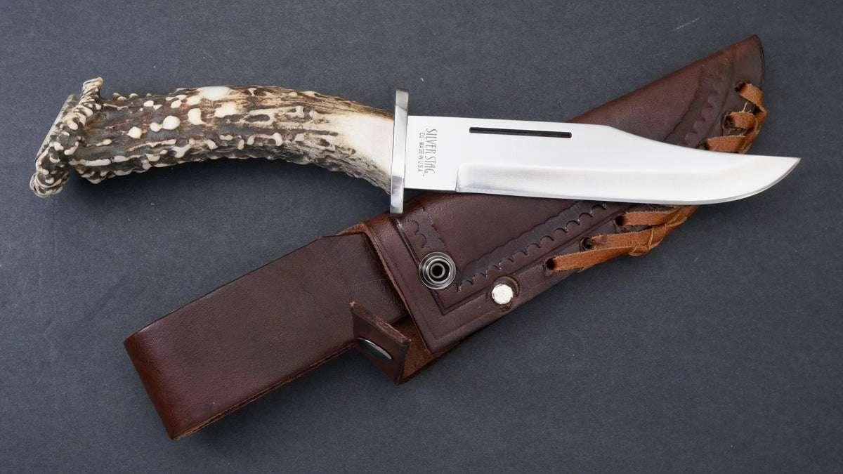 Features D2 Steel Manufactured in Full-Tang construction. Elk or Moose scale slabs are cut, polished, and pinned through the blade tang to give the knife superb control and balance. The blades are heat treated to a 60 Rockwell Hardness. Our Slab Series Designs are guaranteed to provide the hardcore sportsmen with one of most practical and durable knifes ever used. These are a “must have” for the professional sportsman. A high quality leather sheath is included.