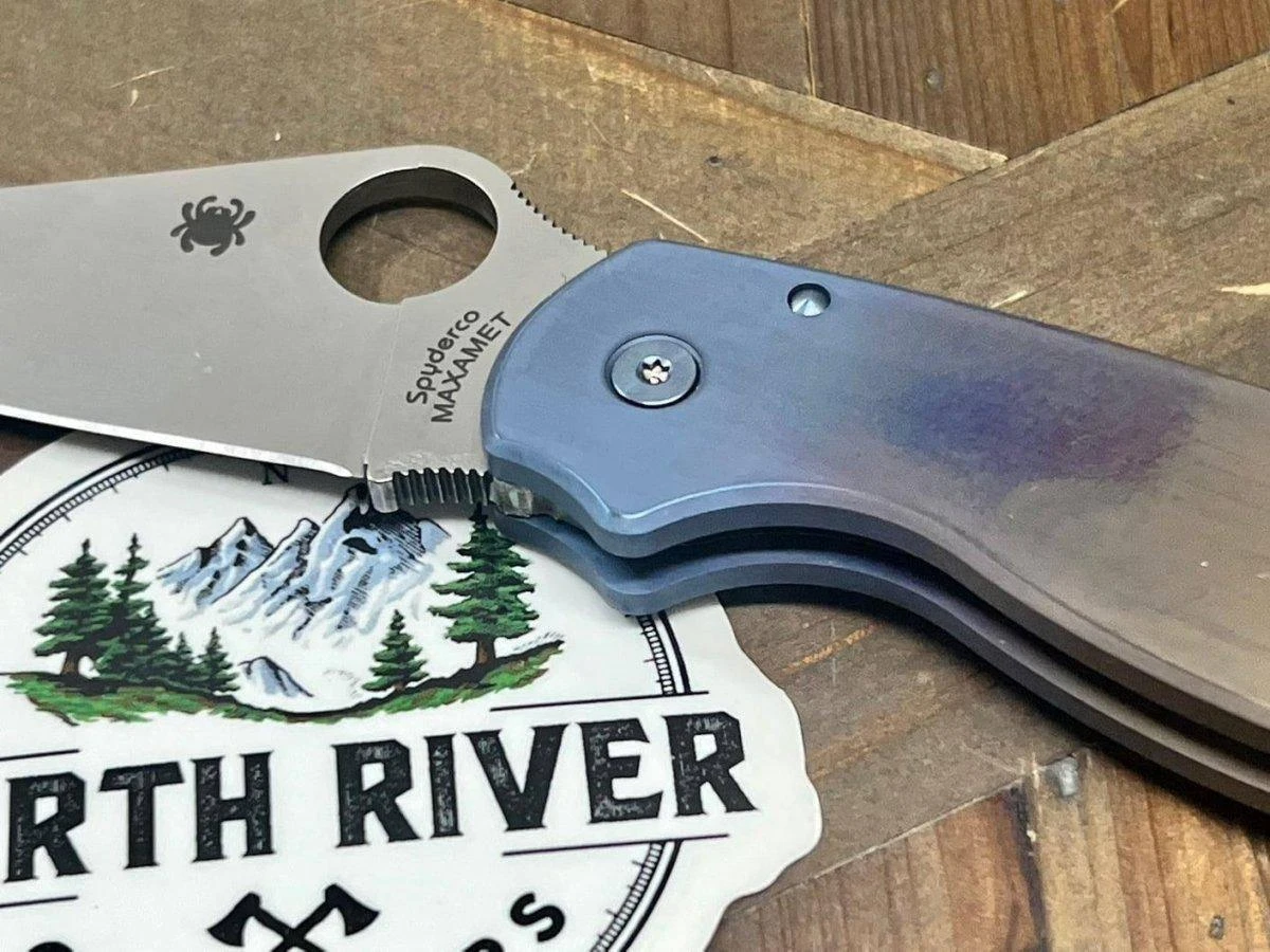 This beautiful and unique semi-custom Spyerdco Para 3 features Maxamet Steel with all titanium hardware, clips and screws anodized in a one-of-a-kind pattern.